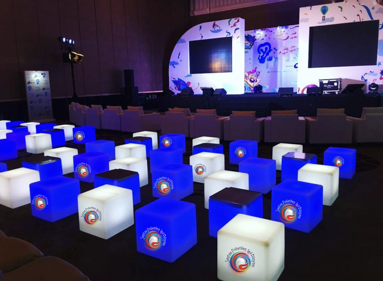 Dekoratif Polietilen Led Işıklı Küplerimiz ölçülerimiz; 30cmx30cmx30cm , 40cmx40cmx40cm, 50cm,50cmx50cm olarak değişmektedir.