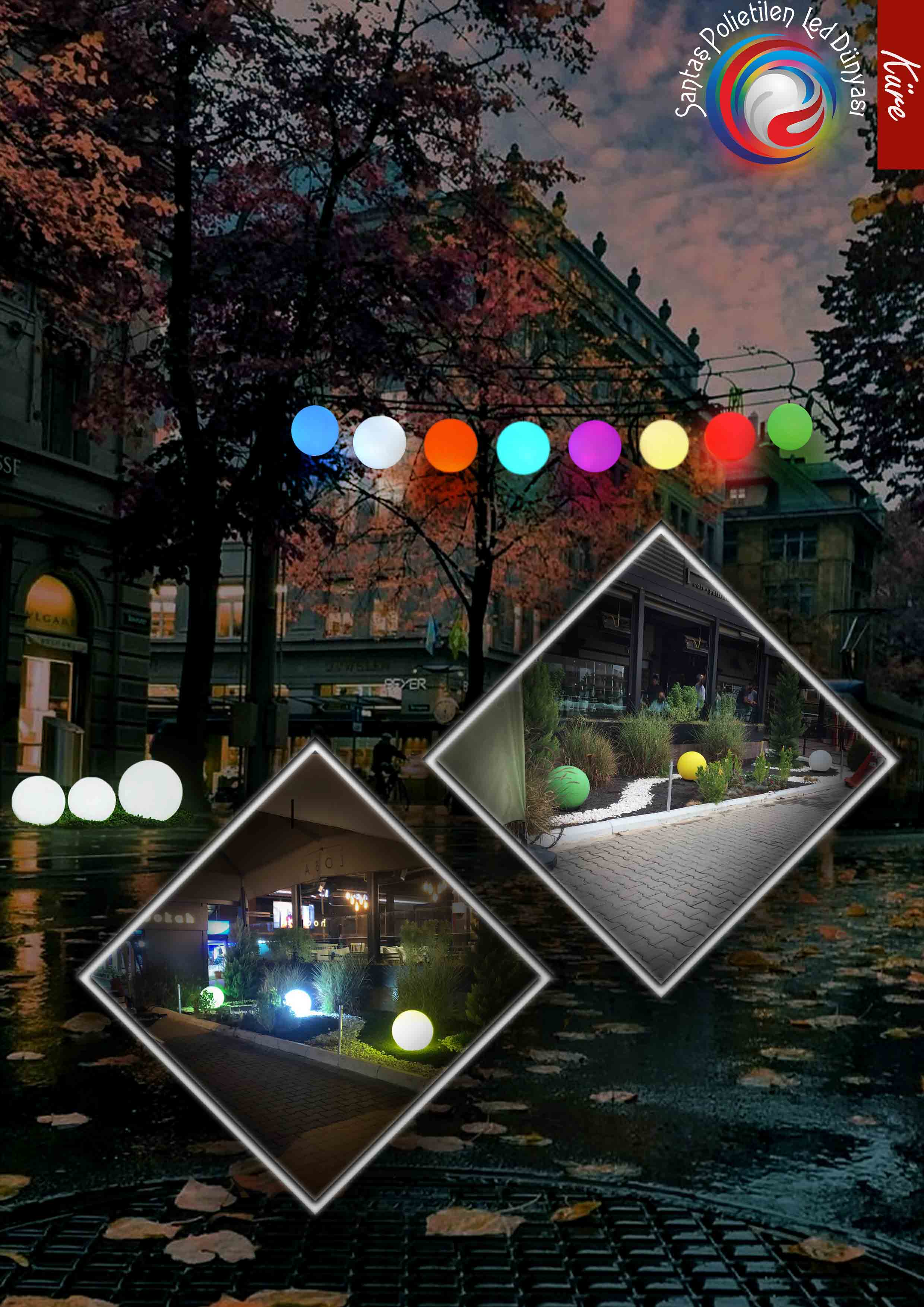 Dekoratif Led ışıklı Polietilen Kürelerimiz; Çap 60 cm, 80 cm, 100 cm, 120 cm olarak değişmektedir.