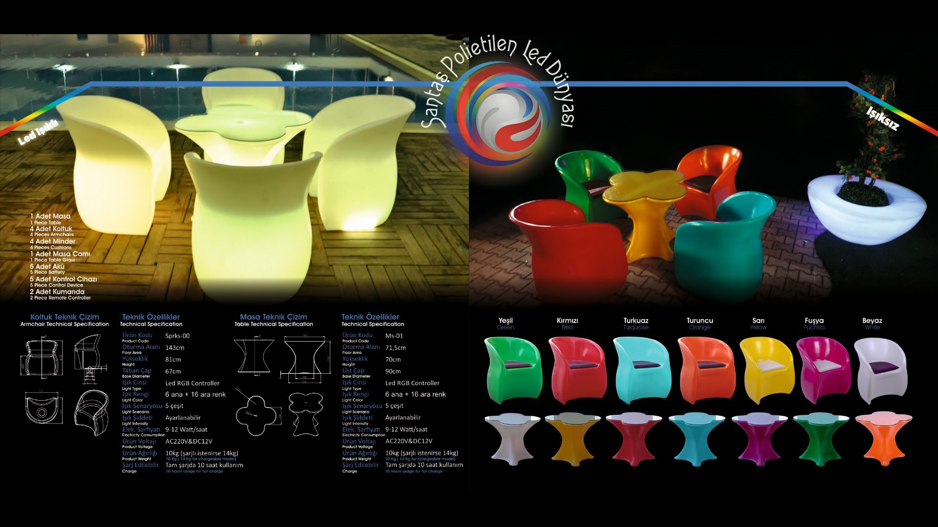 Dekoratif Polietilen Led Işıklı Oturma Grubuplarımızda son aydınlatma sistemi olan LED ışık sistemi kullanılmaktadır.